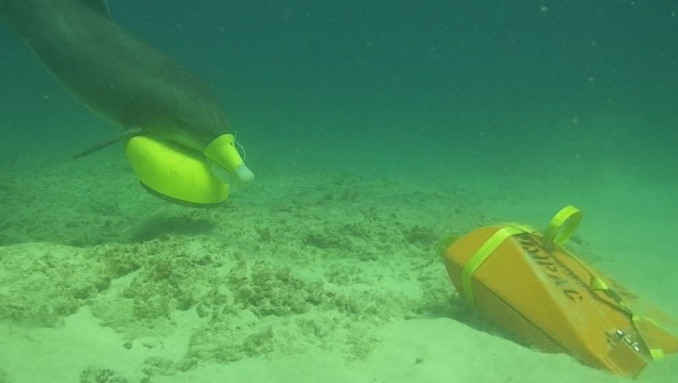 The mine countermeasure training in SOCAL saw the dolphins directed by program trainers to seek out and mark simulated mines.