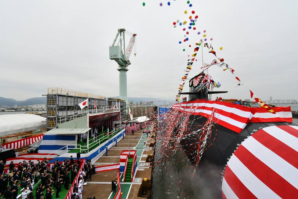 JS Oryu (SS-511) was launched October 4 and is the first JMSDF submarine to run on lithium-ion batteries which store considerably more power than the lead-acid batteries installed on the previous ten Soryu-class submarines.