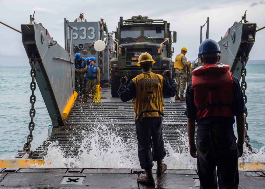 “Our main priority is to work with our leadership and local officials in alleviating as much suffering as possible in CMNI,” said Cmdr. Patrick L. German, Ashland’s commanding officer. “Our advance party has surveyed the area and identified a safe debarkation point for Marines, Sailors and equipment going ashore via our landing craft.”