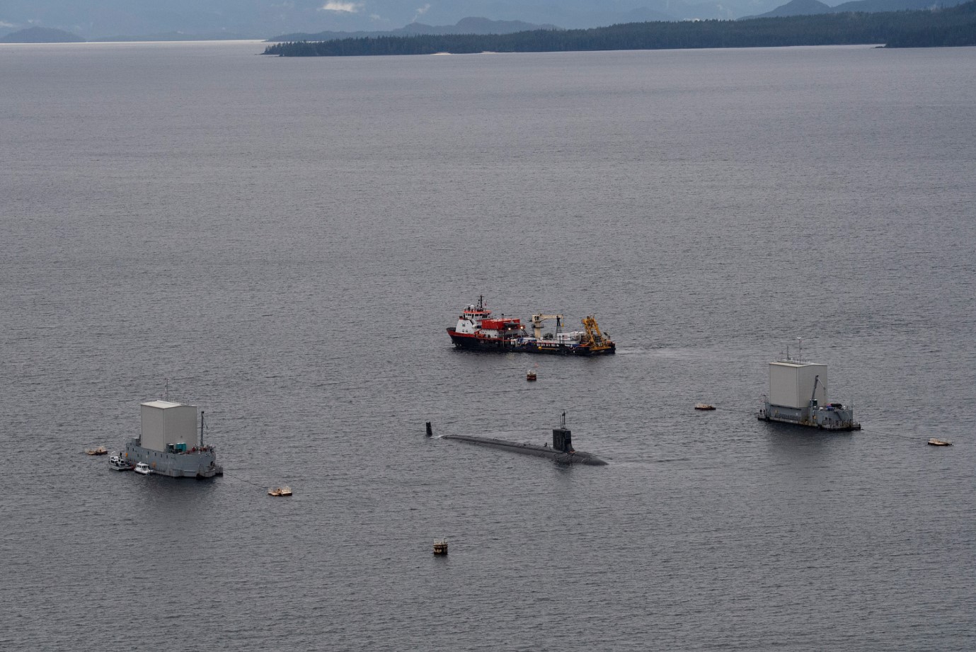 USS Texas (SSN 775) sits surfaced in the Southeast Alaska Acoustic Measurement Facility (SEAFAC) Static Site. Photo: US Navy
