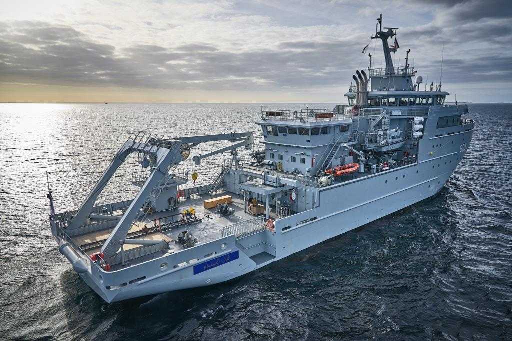 Equipped with multibeam and single beam echo sounders, side scan sonars, and other survey equipment, the RMNS Dar Al Beida will be used in hydrographic and oceanographic missions in addition to being capable of supporting special forces and diver deployment, humanitarian assistance, search and rescue and environment protection missions.
