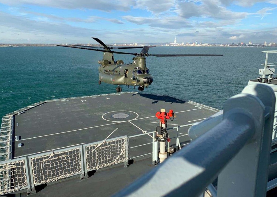 The Royal Navy has started Chinook helicopter trials for the Tide-class tankers off Portsmouth and in the Navy’s South Coast exercise areas.