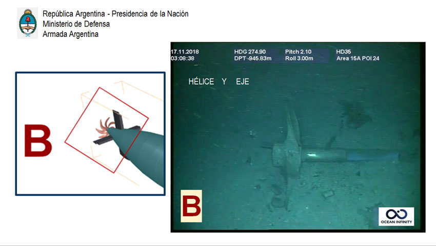 Photos shared by the Argentine Navy show that the submarine’s bow section, sail and propeller were torn off in the implosion.