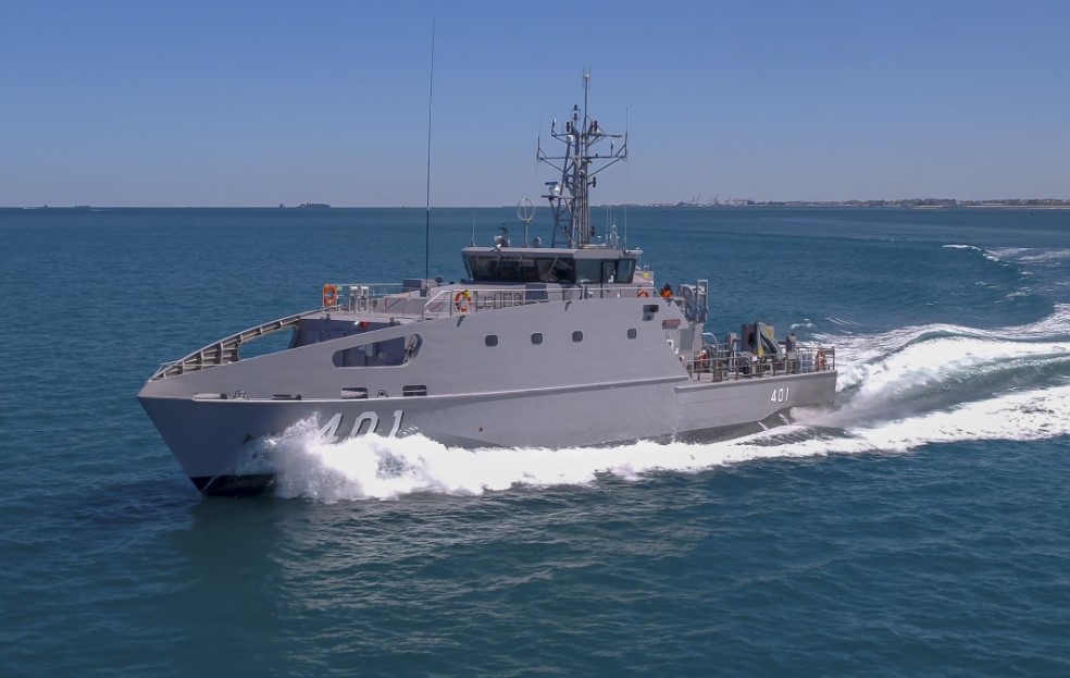 The 39.5 meter steel hulled patrol boats are built by Austal under a contract from May 2016, with a contract option in April 2018 taking the program to 21 vessels valued at AU$335 million.