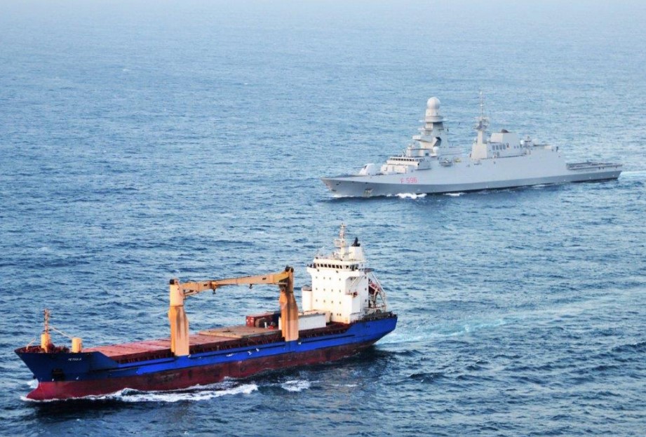 ITS Federico Martinengo escorting a commercial vessel during operation Atalanta. Photo: Italian Navy