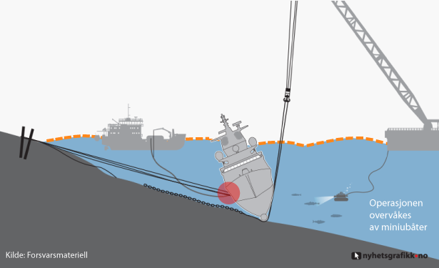 The navy expected it would lift the frigate and transport it to the Haakonsvern base within three weeks.