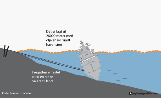 HNoMS Helge Ingstad has been stable for a long time now, according to the navy, and is secured to land with steel wires.