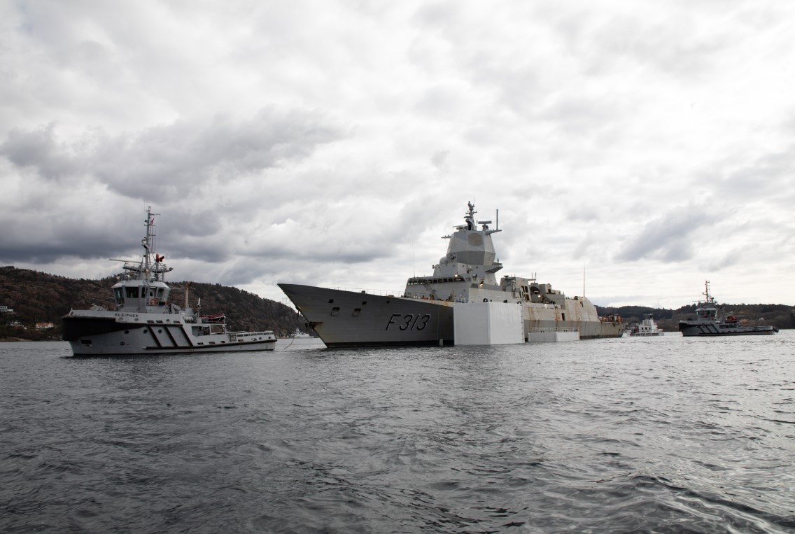 Norwegian frigate HNOMS Helge Ingstad returns to water