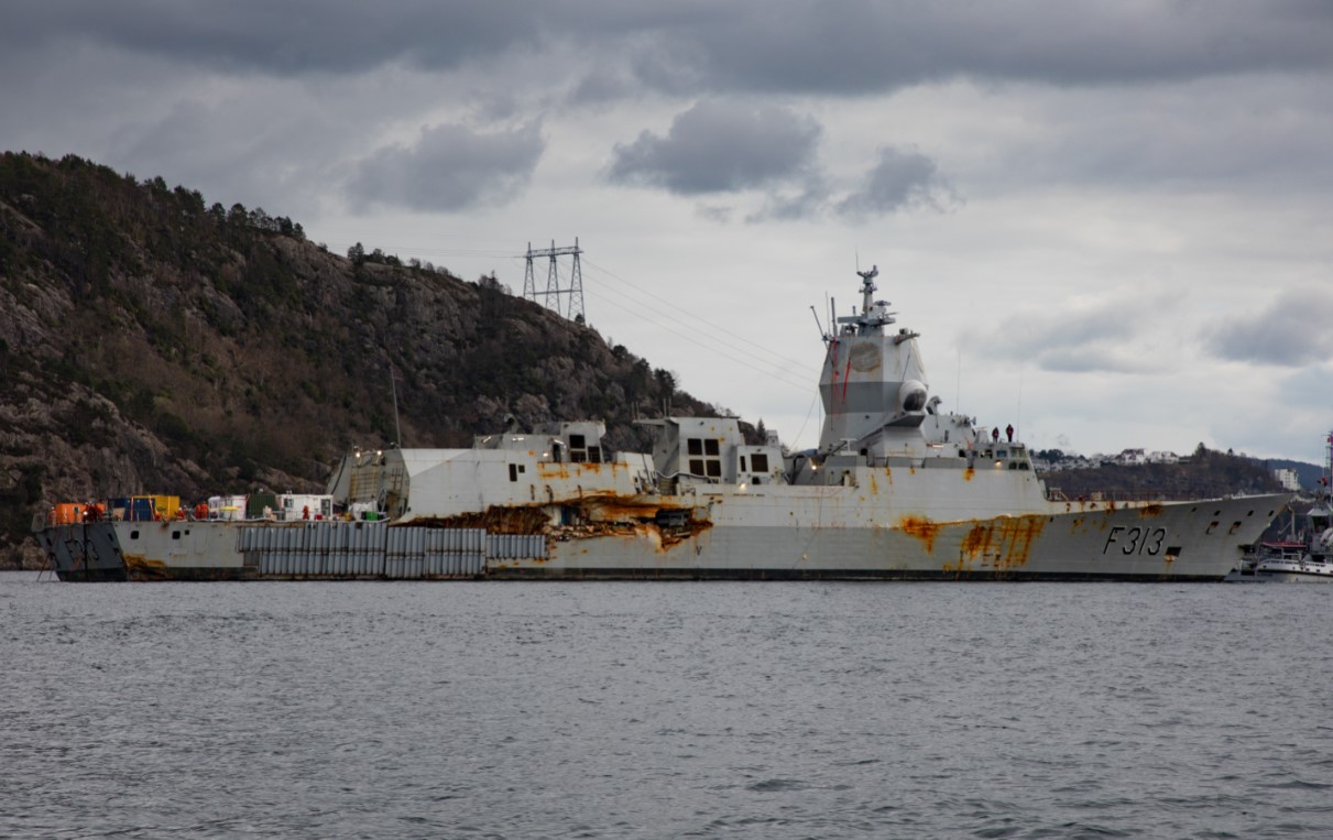 The Royal Norwegian Navy frigate HNoMS Helge Ingstad was refloated on April 10, less than six weeks after she was transported to the Haakonsvern navy base from the seafloor in Hjeltefjorden.