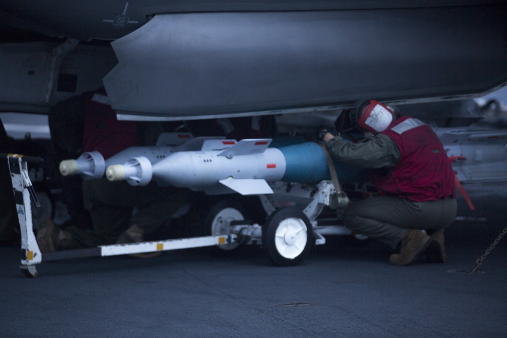 In addition to employment of the GAU-22, the F-35B aircraft dropped a GBU-32 1,000-pound Joint Direct Attack Munition, and a GBU-12 Paveway II 500-pound laser-guided bomb on a first sortie.
