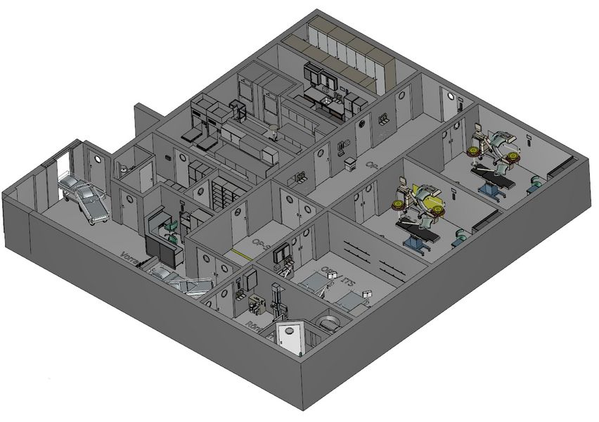 The iMERZ is a complete hospital consisting of a hospital ward, two operating rooms, an X-ray room, a dental technology department and various laboratories.