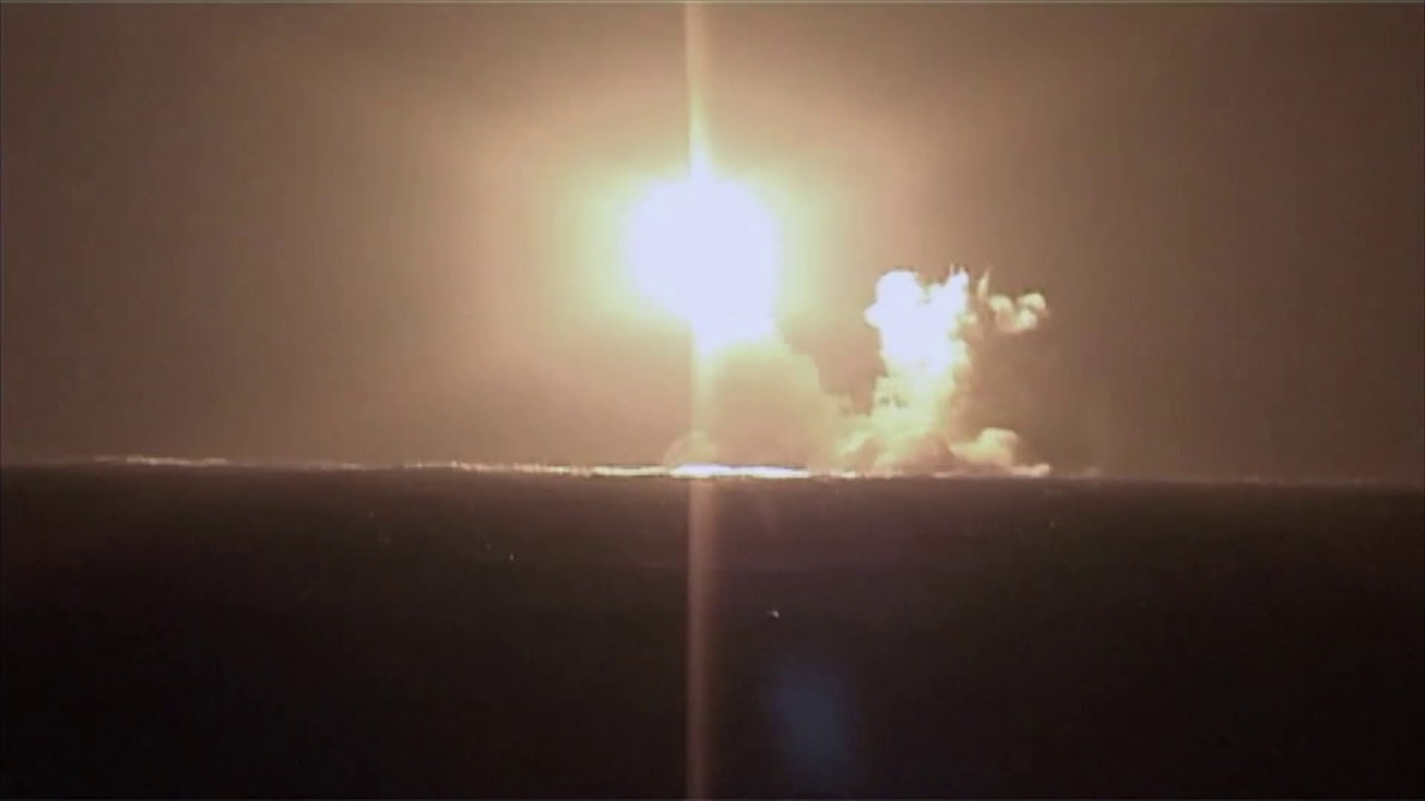 The missile launch took place in the White Sea and was part of the boat’s at-sea trials.