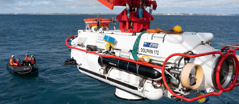 In Australia, submarine rescue involves sending a smaller or “mini” piloted submarine to a disabled submarine to rescue the crew on board and transfer them safely under pressure to the ocean’s surface where they are able to receive potentially life-saving decompression treatment in a specially-designed hyperbaric equipment suite.