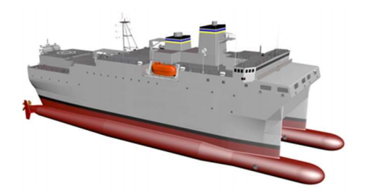As explained, T-AGOS has a SWATH style design and is built to tow a surveillance towed array sensor system. The catamaran design prevents it from rolling in heavy seas. T-AGOS will be designed for a 30-year service life.