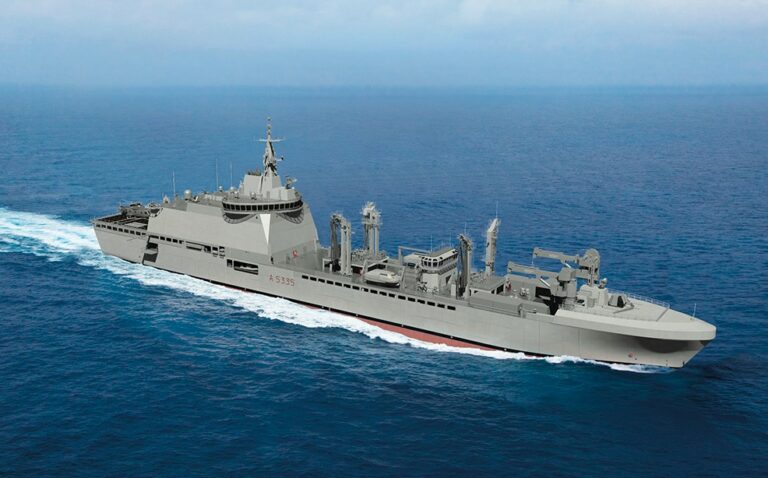 As informed, the rudder design is carried out by DMC’s engineers in Hamburg and will be CFD optimised for the ship’s operational profile, with special focus on cavitation behaviour, course-keeping and manoeuvring, essential attributes for naval vessels of all types and particularly for support vessels transferring fuel and supplies at close quarters whilst underway. This capability is due to their open flap linkage mechanisms and side bar flap systems with a 90-degree angle. They also emit minimal noise and vibration, according to DMC.