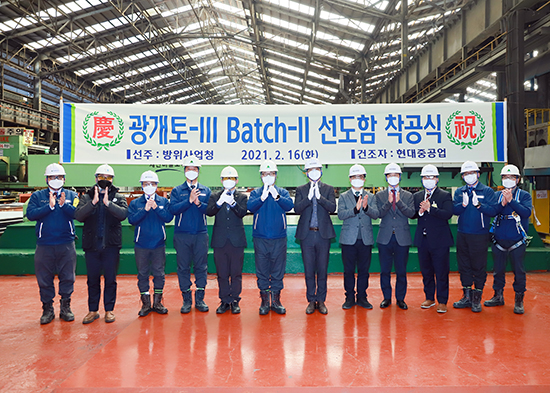 HHI held a steel-cutting ceremony for the next-generation Aegis destroyer in Ulsan on 16 February 2021.
