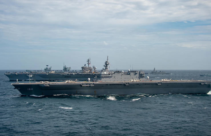 As informed, while in the South China Sea, Japan and US Navy units are conducting maritime security operations, including flight operations, coordinated tactical training between surface and air units, refueling-at-sea evolutions, and maritime strike exercises.