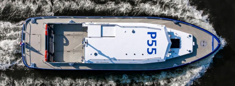 The P55 is also fitted with a diesel generator for extra range when needed. The accommodation is comprised of a wheelhouse with a dinette with all-round visibility, and each has a sanitary space and galley down below. The hulls for the vessels were built at Damen Shipyards Kozle in Poland and then shipped to Damen Shipyards Hardinxveld for outfitting and delivery.