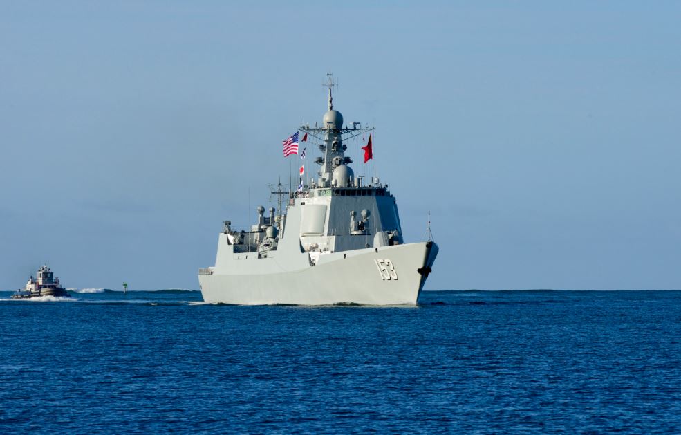 Chinese People's Liberation Army (Navy) (PLA(N) Luang II class guided-missile destroyer Xian (153) flies a US flag as it arrives at Joint Base Pearl Harbor-Hickam for Rim of the Pacific (RIMPAC) 2016. Photo: US Navy