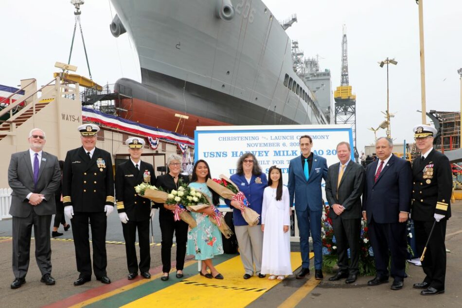 On 6 November, General Dynamics NASSCO has christened and launched the future USNS Harvey Milk (T-AO 206), the second ship for the U.S. Navy’s John Lewis-class fleet oiler program.