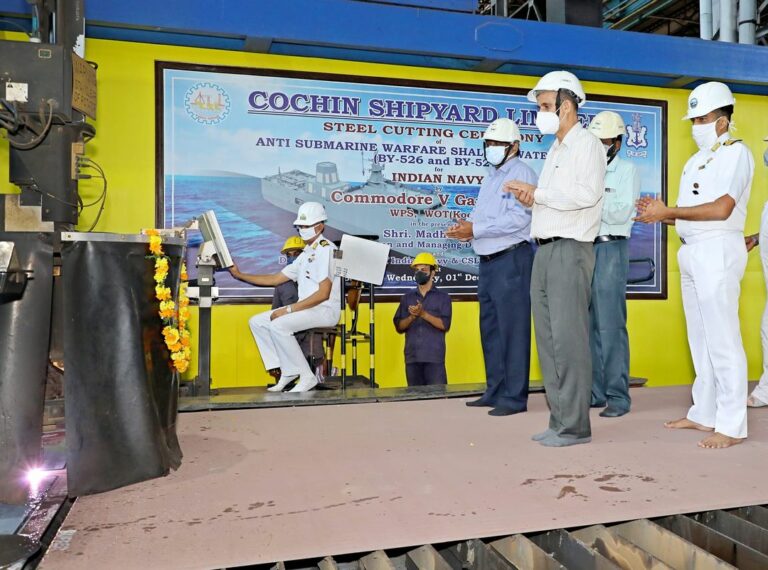 Indian Cochin Shipyard Limited (CSL) has held a steel-cutting ceremony for two anti-submarine warfare shallow water crafts (ASWSWCs) built for the Indian Navy.