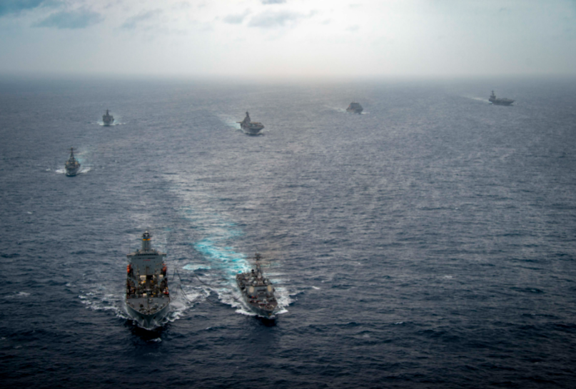 As informed, the training operations included integrated maritime strike missions, maritime interdiction operations, anti-submarine warfare, replenishment-at-sea and formation maneuvering/navigation operations.