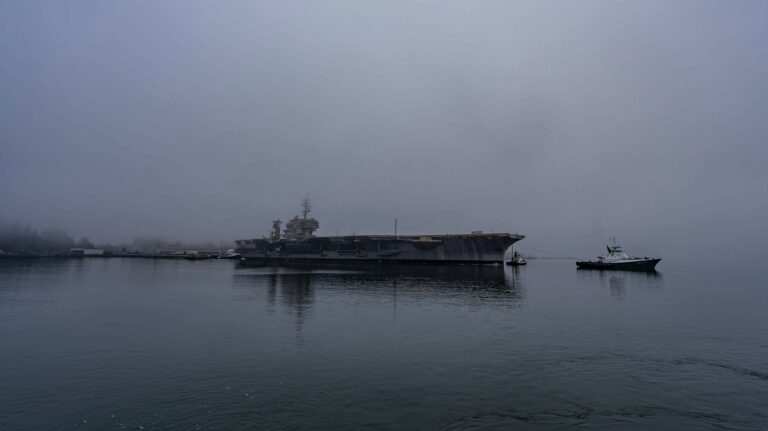 USS Kitty Hawk, the US Navy’s last conventional-powered aircraft carrier, has embarked on its final voyage from Naval Base Kitsap, Bremerton to a ship-breaking facility in Texas.