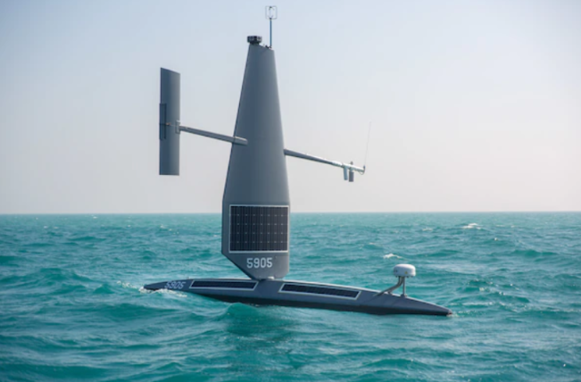 The vessel is a 23-foot-long (7 meters), 16-foot-tall (4.8 meters) USV reliant on wind power for propulsion. The unit houses a package of sensors powered through solar energy for building a shared picture of the surrounding seas.