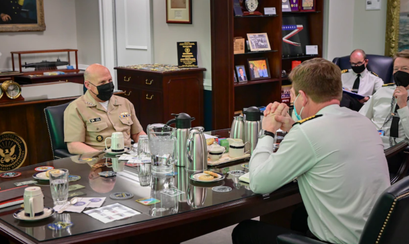 Gilday and Key exchanged views about security issues in Europe, the Middle East, and the Indo-Pacific, underscoring the importance of the US-UK bilateral relationship and defense cooperation, as well as the NATO alliance.