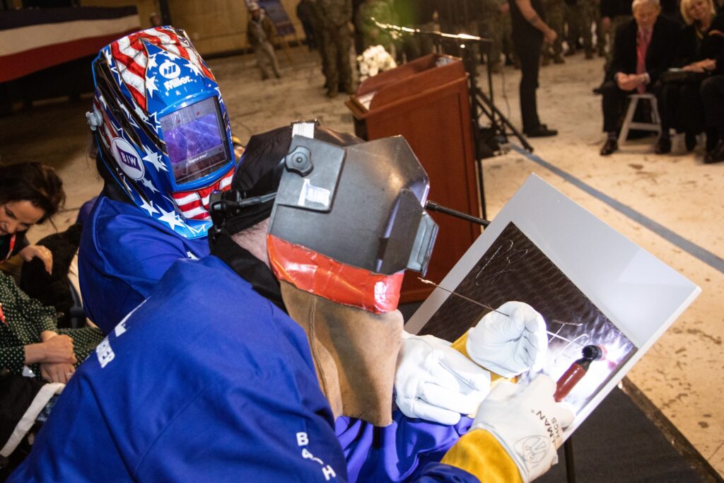 The steel cutting ceremony for the Arleigh Burke-class guided-missile destroyer USS Quentin Walsh took place last November.