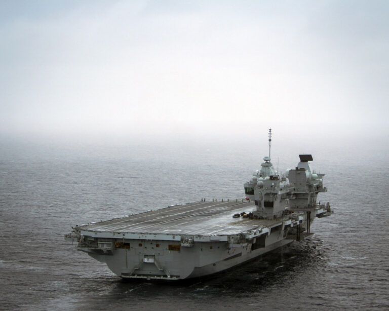 Having acted as NATO command ship throughout NATO’s Arctic exercise Cold Response 2022, the carrier and its task group, including frigate HMS Richmond, destroyer HMS Defender, tankers RFA Tiderace and Tidesurge and a hunter-killer submarine remained in the North Atlantic to continue their Arctic deployment/cold weather operations under the banner of UK new defence policy.