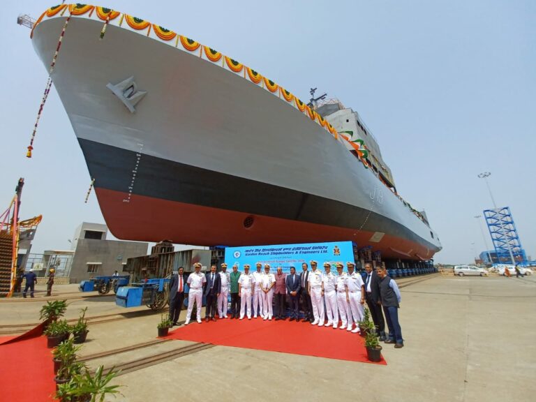 Nirdeshak, the second of the four large survey vessels being built by Garden Reach Shipbuilders and Engineers (GRSE) in collaboration with L&T Shipbuilding for the Indian Navy, was launched on 26 May at Kattupalli, Chennai.