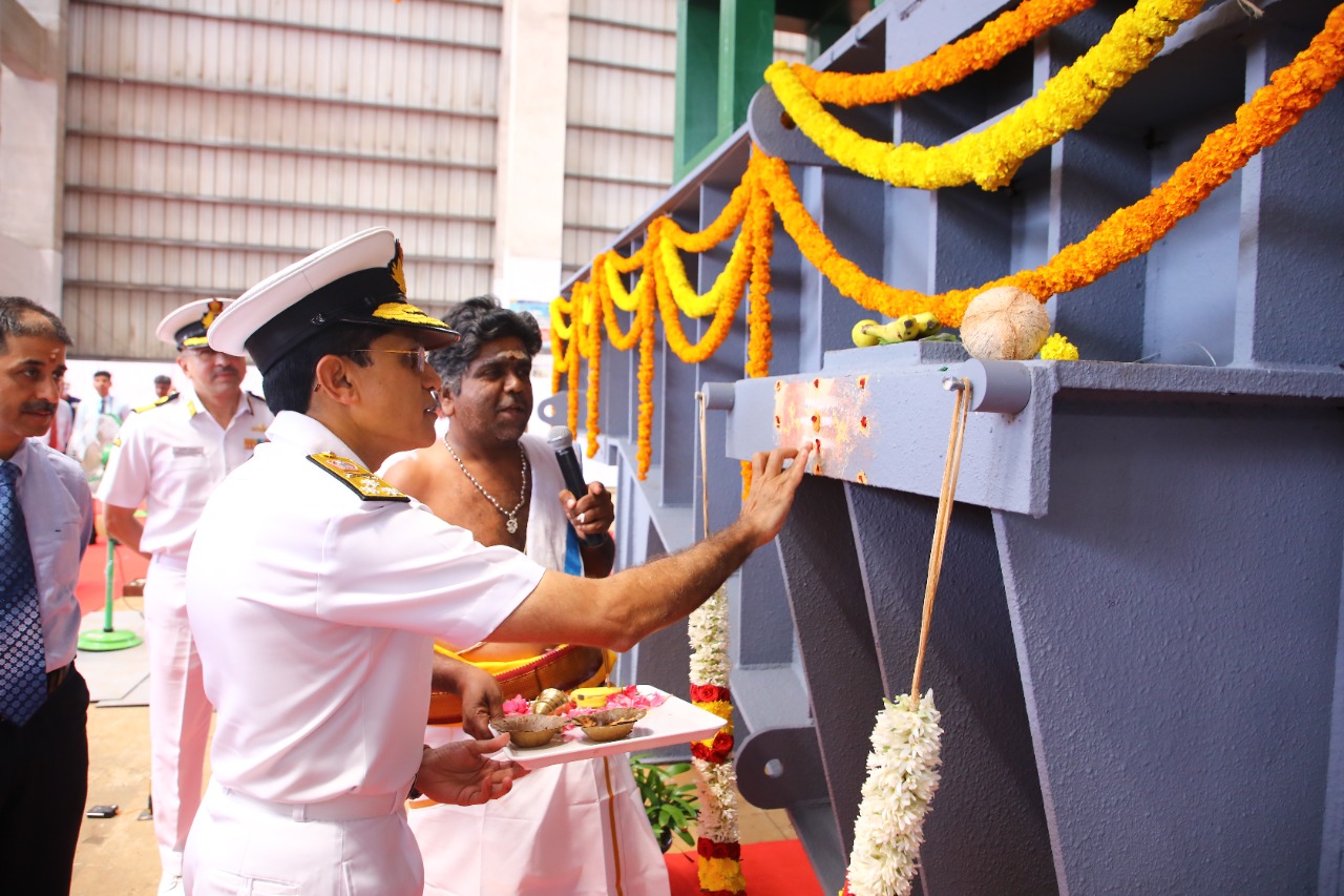 The ceremony of keel-laying for the three vessels took place on 17 June. Yard 3028 is the fourth and last in the series of Sandhayak-class survey vessels, while Yards 3030 and 3031 are the third and fourth in a series of eight SWC.