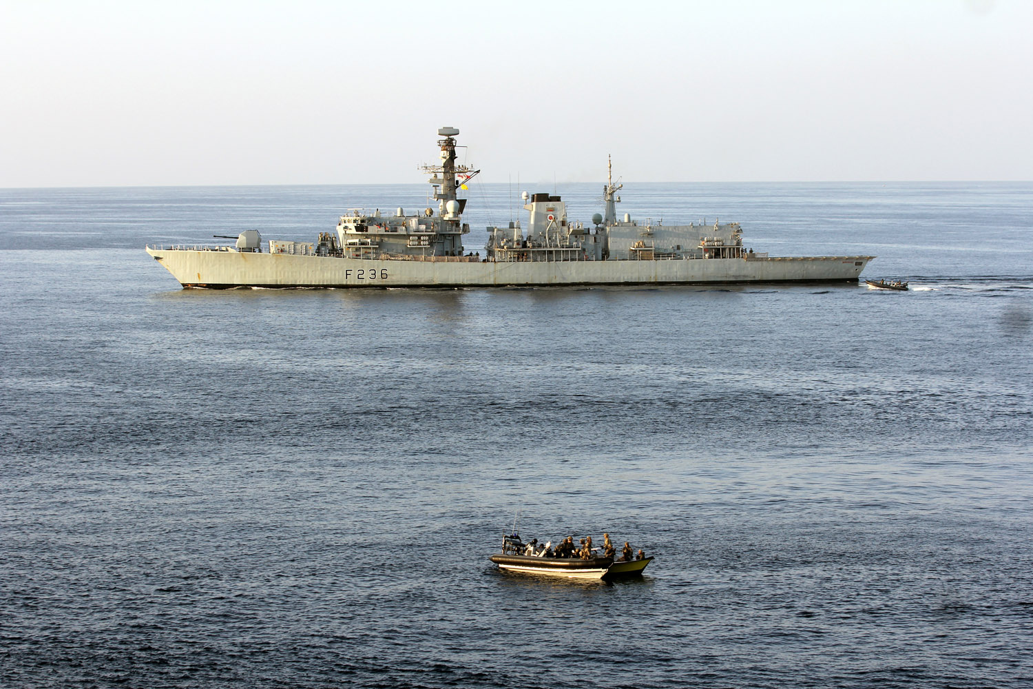 A team of Royal Marines approached the vessels on two Rigid Hulled Inflatable Boats before securing and searching the vessel. Dozens of packages containing advanced weaponry were discovered, confiscated and brought back to HMS Montrose, the navy stated.