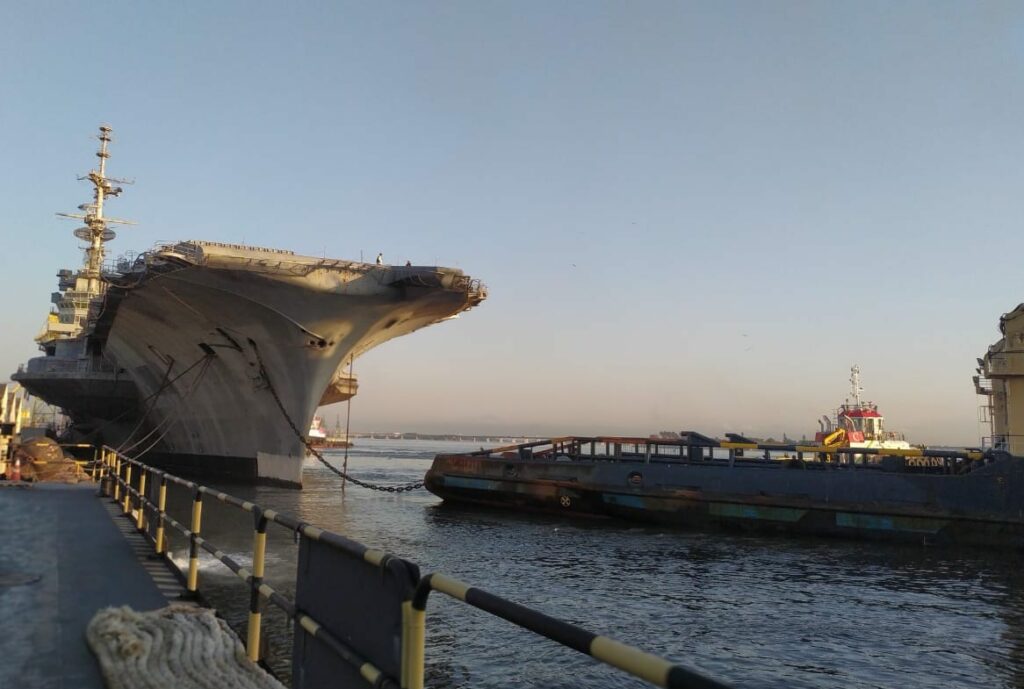 Brazilian Navy’s aircraft carrier Sao Paulo, formerly known as French warship Foch, has been placed under tow on an about 6000-mile journey to Aliaga, Turkiye, where it is to be scrapped.
