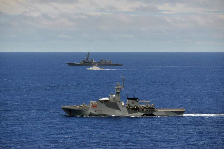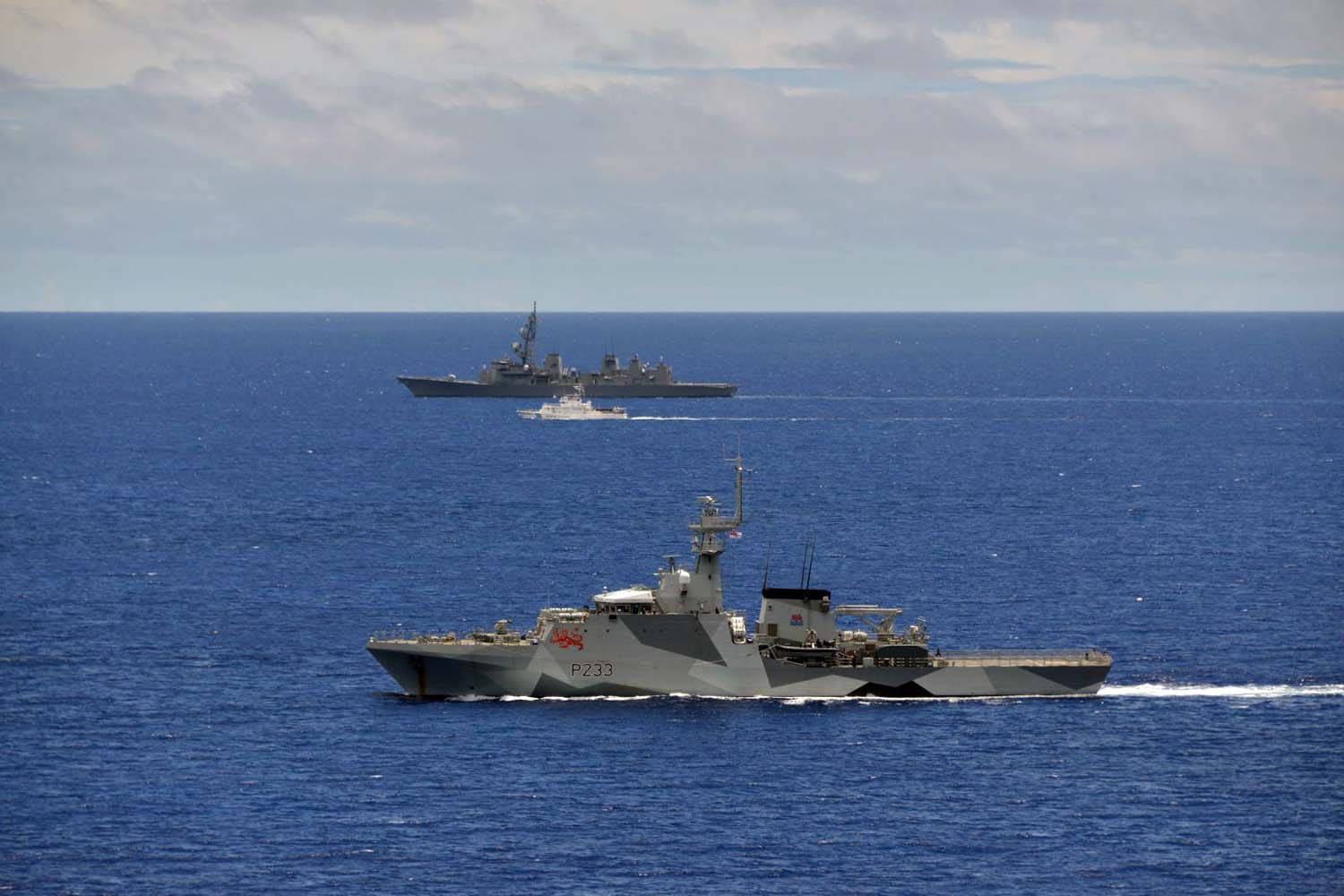 HMS Tamar, PSS Kedam and JS Kirimase off Palau; Photo: Royal Navy