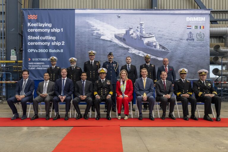 The initial order for the construction of two OPVs was awarded to Damen by the Islamic Republic of Pakistan’s Ministry of Defense Production following the completion of a transparent bidding process.