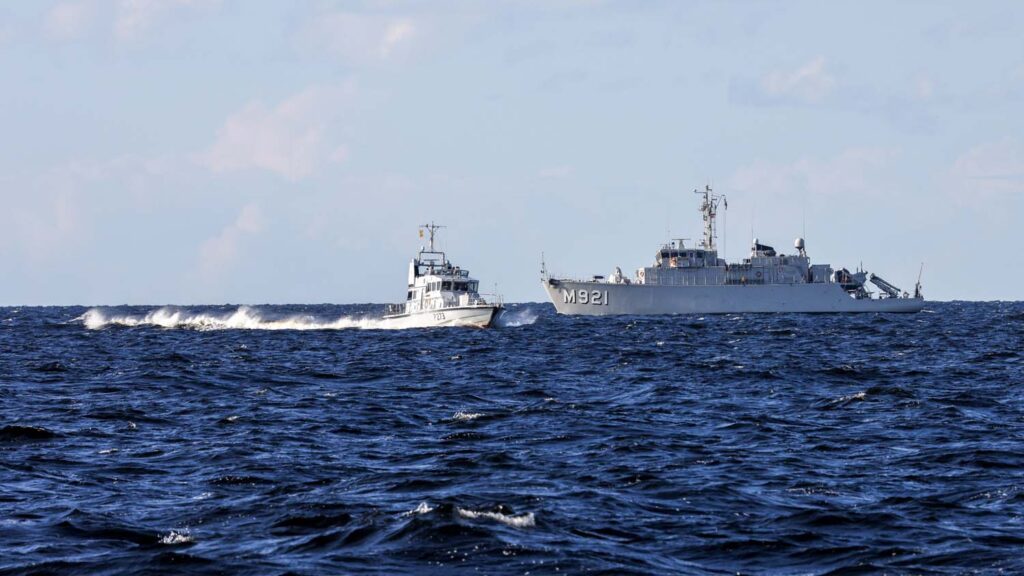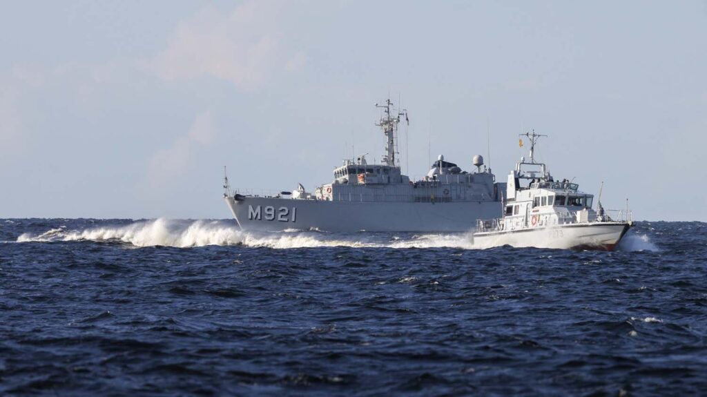 HMS Pursuer acting as enemy forces during BALTOPS 2024 against Belgian minehunter Lobelia; Royal Navy