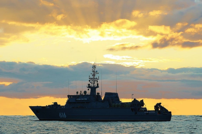 Specifically, during the drills in the mine threat area, servicemen of the minesweeper Pyotr Ilyichev deployed the Diyez automatic search and mine detection system and the Livadiya sonar, after which one Skanda uncrewed surface vehicle was launched.
