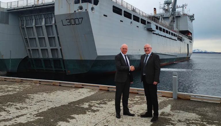 This event, which also saw the presence of British and Norwegian defense and government officials, took place alongside the Royal Navy ship RFA Lyme Bay.