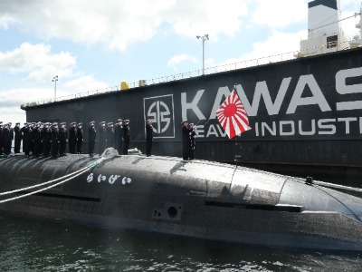 The vessel is the fourth Taigei class submarine, and the 31st built at Kawasaki Kobe Shipyard after World War II.