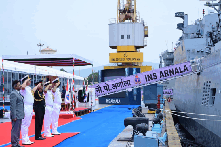 The commissioning ceremony for the ASW SWC INS Arnala, built by Garden Reach Shipbuilders and Engineers (GRSE), took place today (June 18, 2025). It was delivered to the navy in March this year.