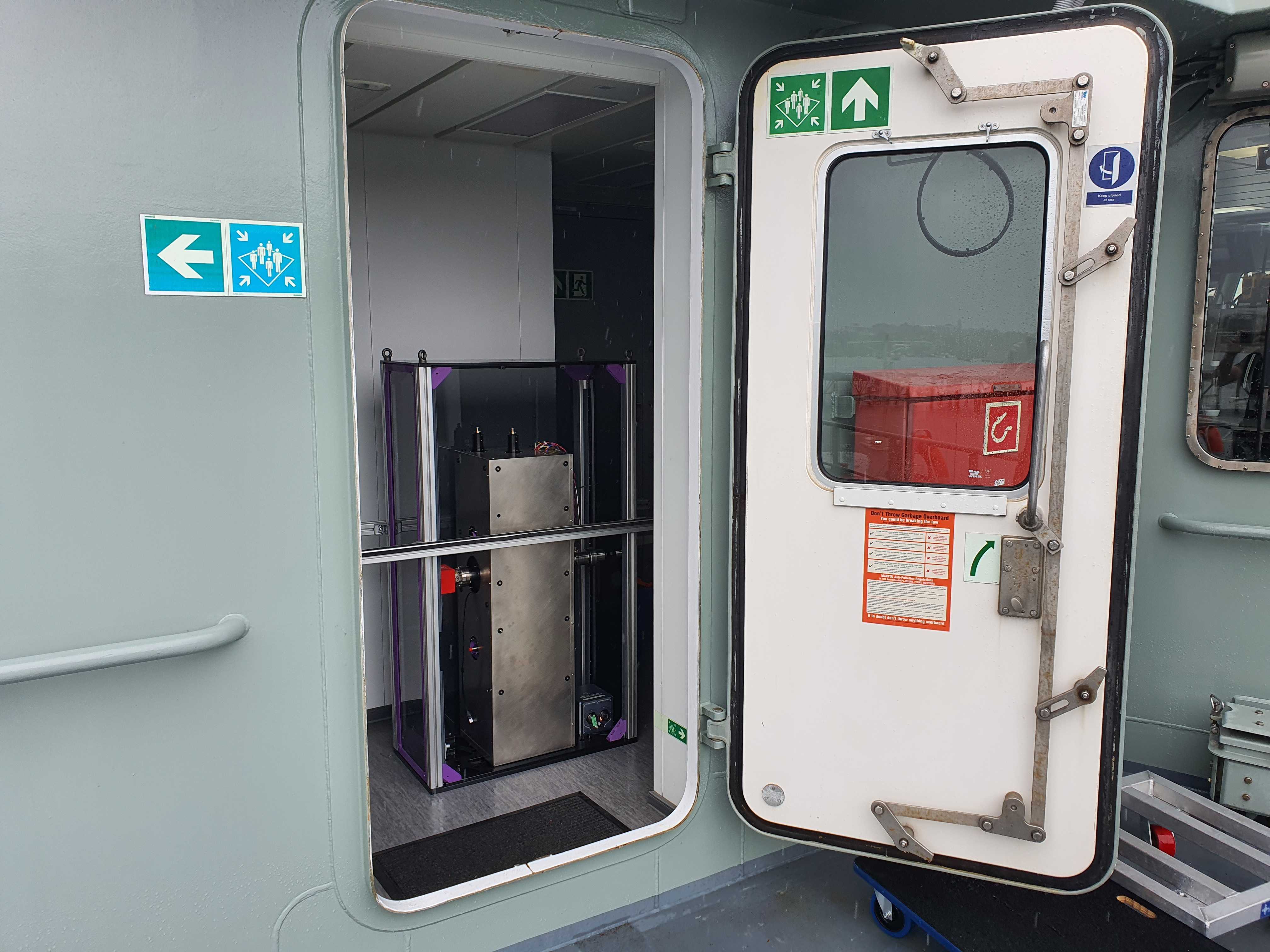 The dual gravimeter was installed in a “strapdown” configuration (bolted to the floor) in the space of a single server rack in a communications room onboard MV Sycamore. The sensor consumed only 180W of power – about 10 times less than a household toaster, setting a record for SWaP (size, weight, and power).