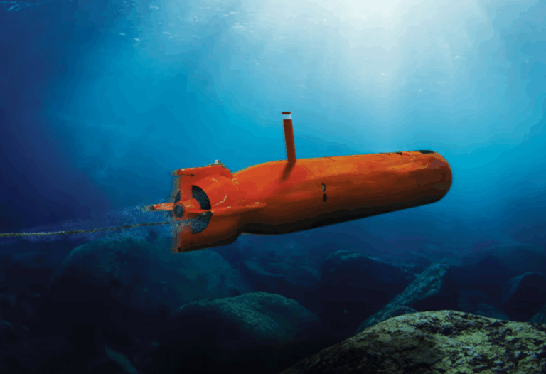 The AUV62-AT is an autonomous underwater vehicle and training target that simulates a submarine, torpedo, or uncrewed vehicle.