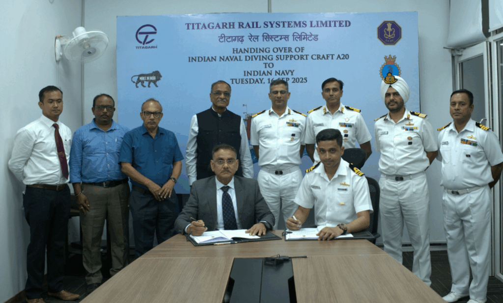 DSC A20, the first indigenously designed and constructed diving support craft, was delivered by Titagarh Rail Systems Limited (TRSL) to the Indian Navy on September 16, 2025, at Kolkata.