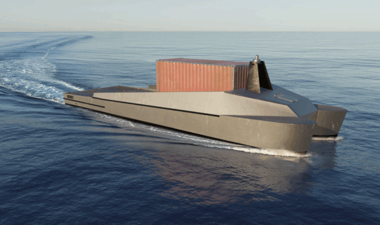 The design shares major subsystem components with the fielded global autonomous reconnaissance craft (GARC) systems, currently being produced at BlackSea’s Baltimore facility. The hull form, derived from BlackSea’s operational GARC platform, uses slender twin aluminum hulls for low drag and high stability. Powering the craft are dual Volvo Penta D8-IPS600 integrated propulsion units.