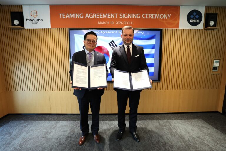 South Korea’s Hanwha Ocean has formalized its entry into the Greek naval and maritime defense sector by signing a strategic teaming agreement with Greece’s ONEX Shipyards & Technologies Group, the country’s largest shipbuilding and defense firm.
